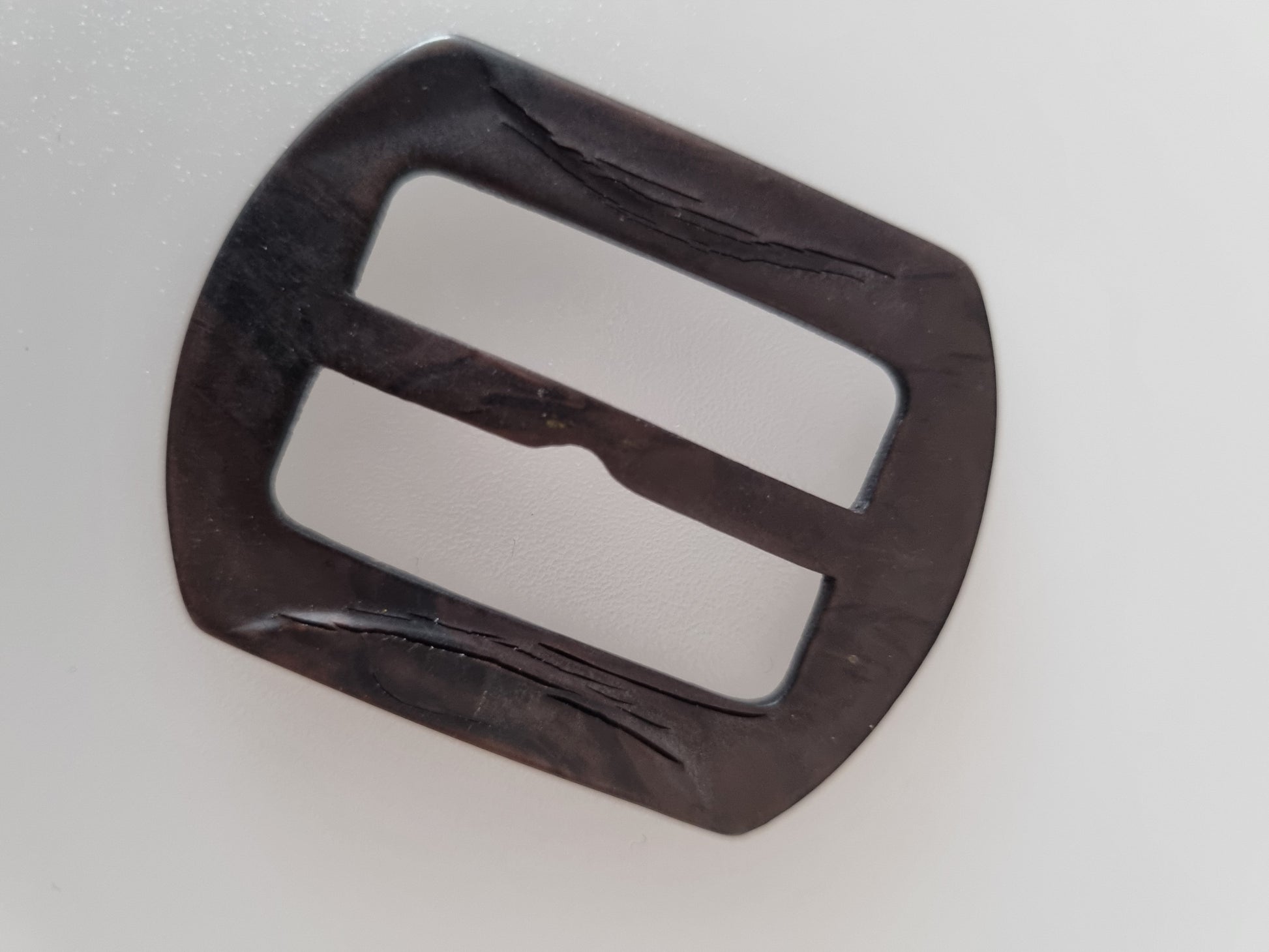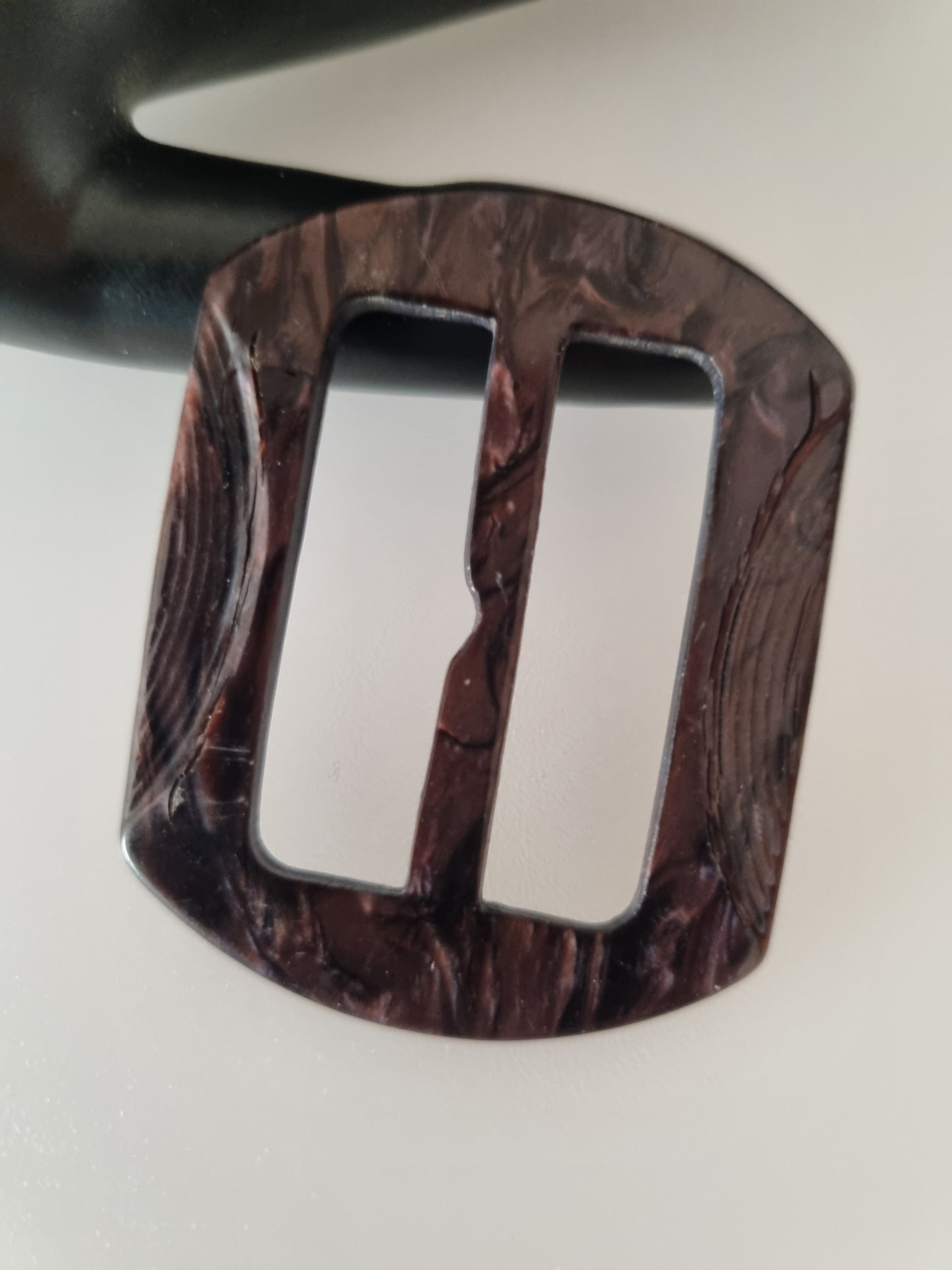 Description: Vintage Buckle Brown Tortoise Shell Effect. For Belts, Sewing, Scarves, Crafts.Brown tortoiseshell effect plastic buckle — perfect for retro belt rework or handbag closures.
