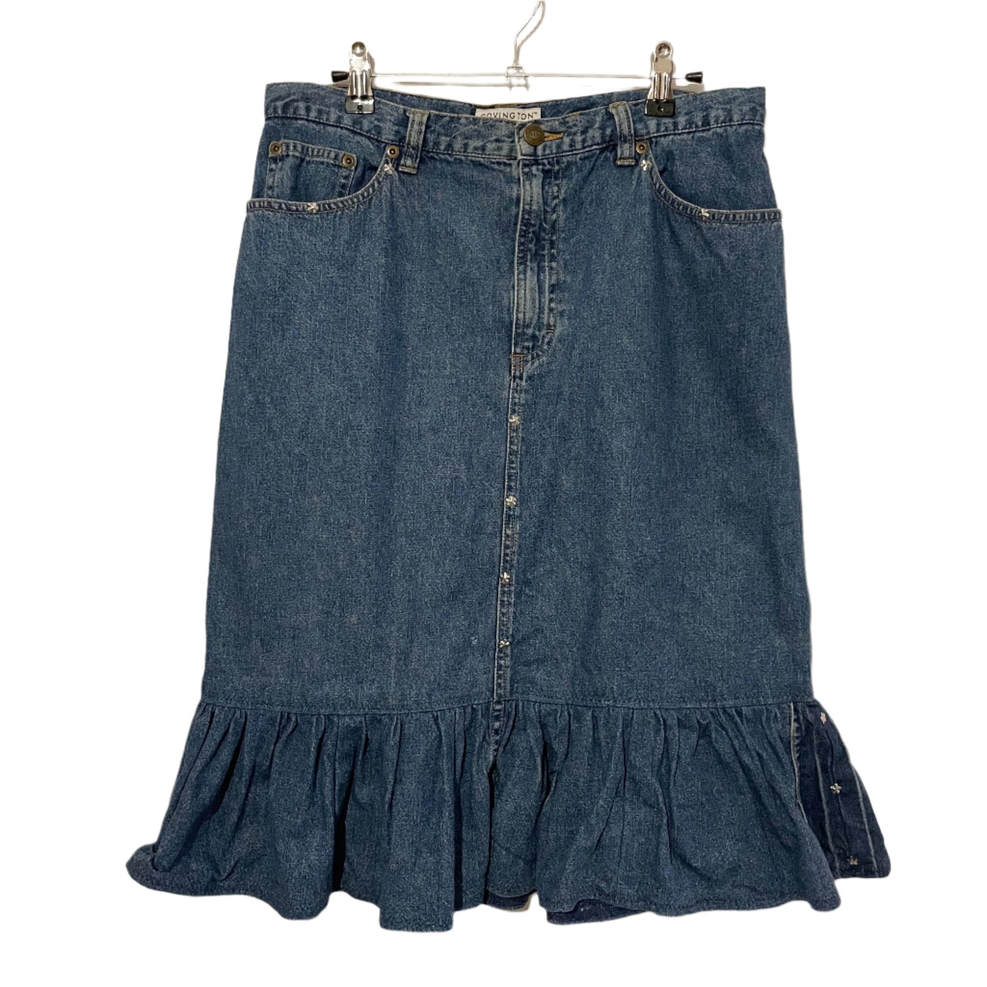 Denim Skirt Mid Length Covington Ruffle Fit and Flare Size 12, a distinctive find for any vintage appreciator.