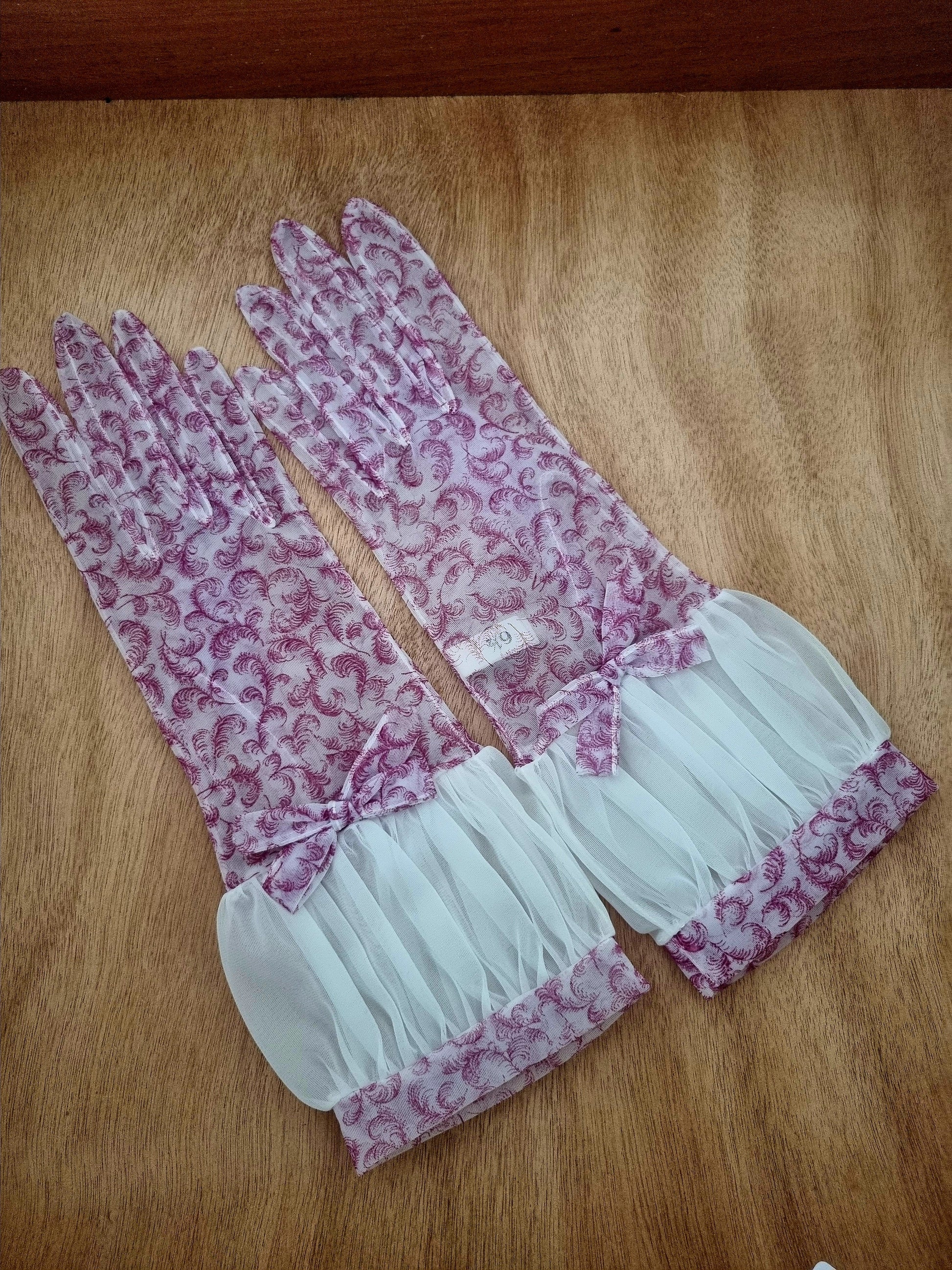 Vintage Gloves Purple White Sheer Feather Polymix Short Gant Made in England