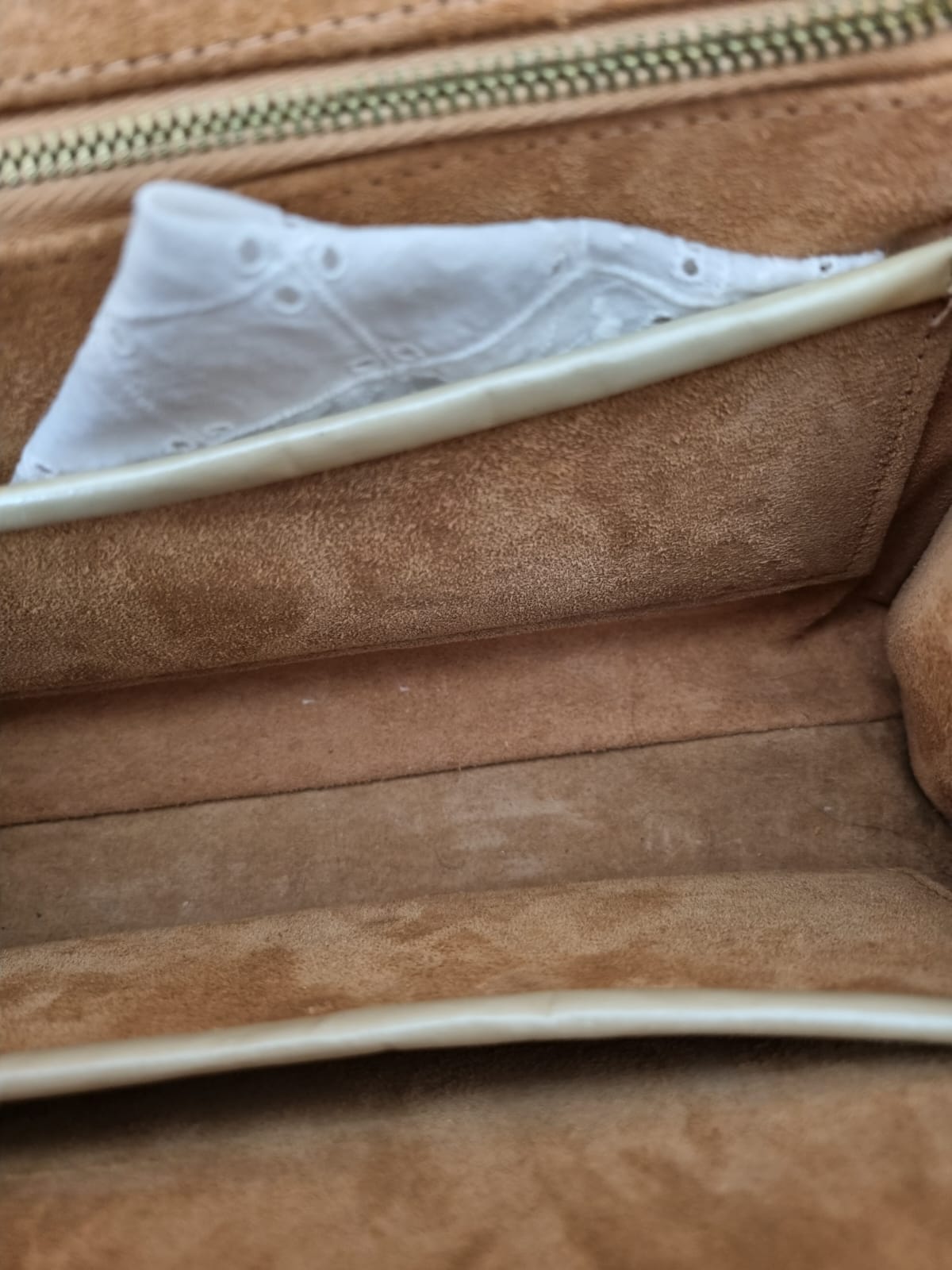 Vintage Cream Ackery Top Handle Pearlised Handbag with Hankerchief. Made in England