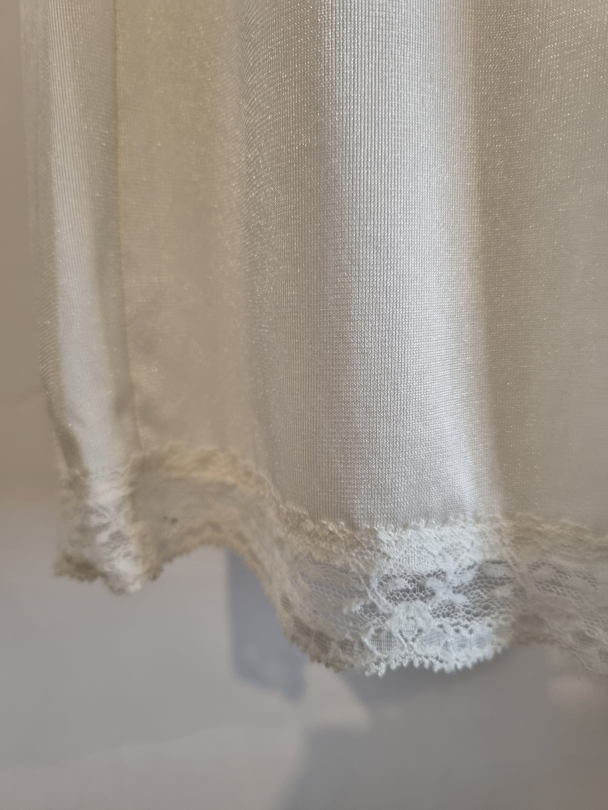 Vintage Elasticated Cream Half Slip Skirt with Lace Trim UK, a distinctive find for any vintage appreciator.