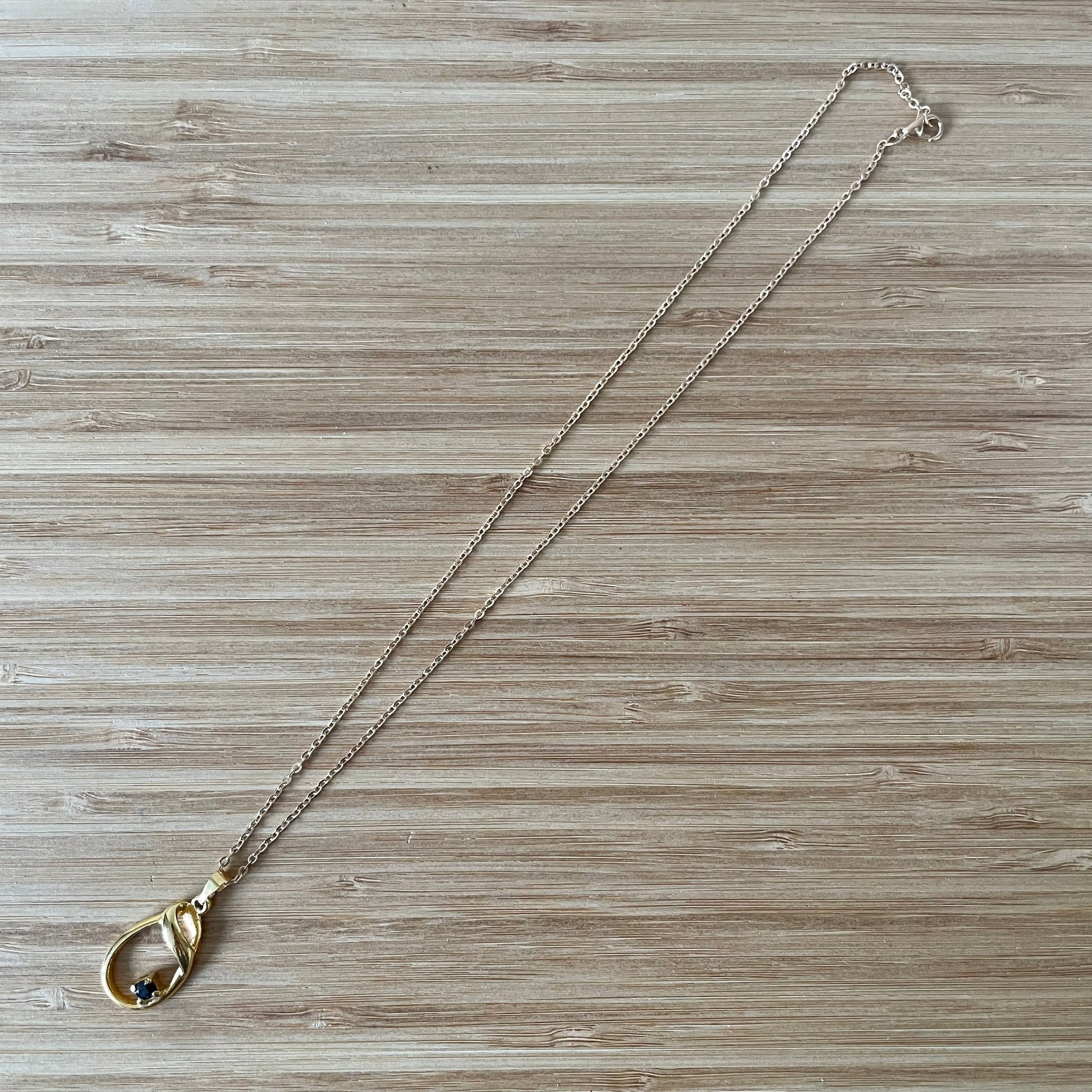 Necklace Vintage Gold Tone and Black Gem Swirl Pendant, a distinctive find for any vintage appreciator.