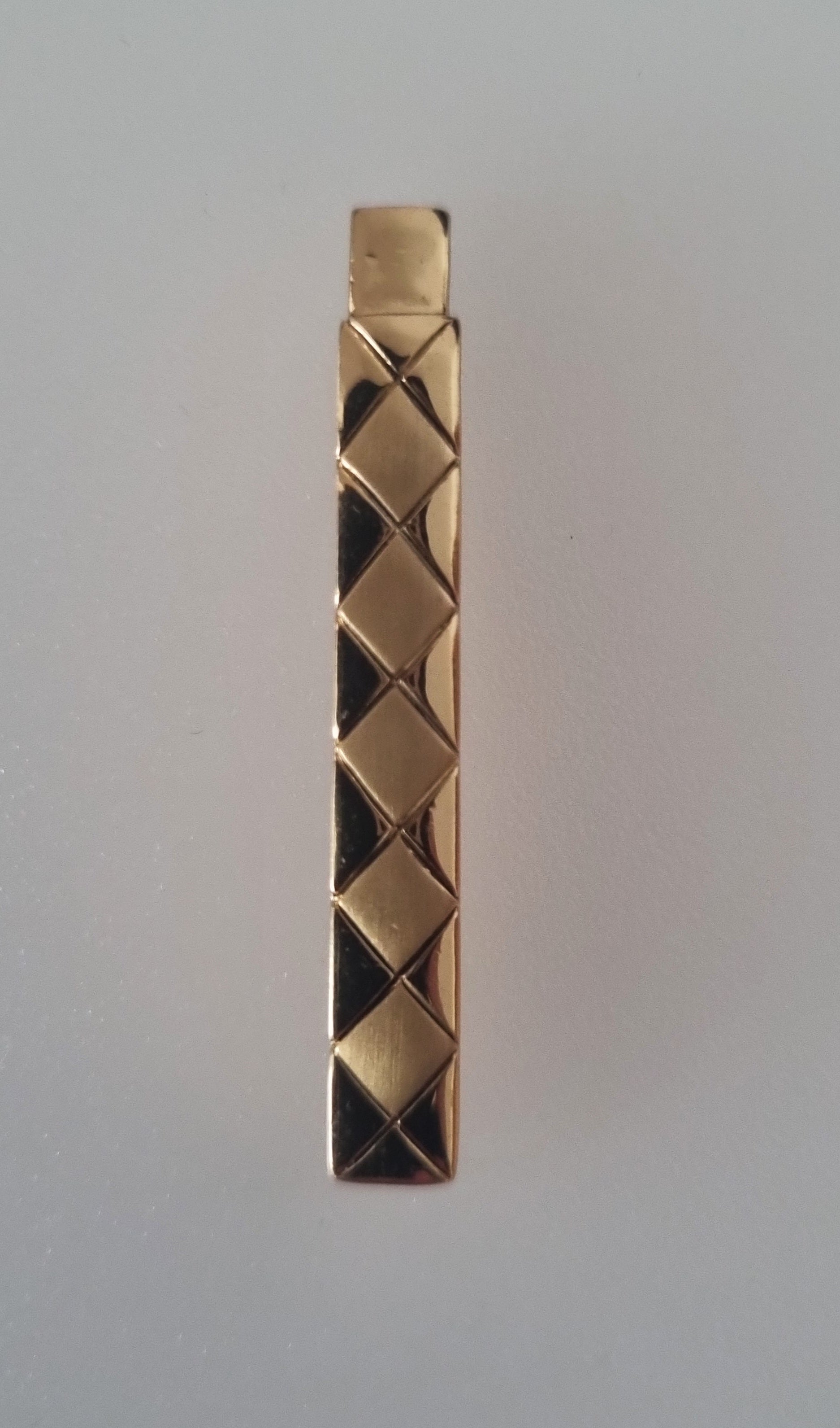 Vintage Pendant Charm Sleek Rectangular Crosshatch Gold Tone
